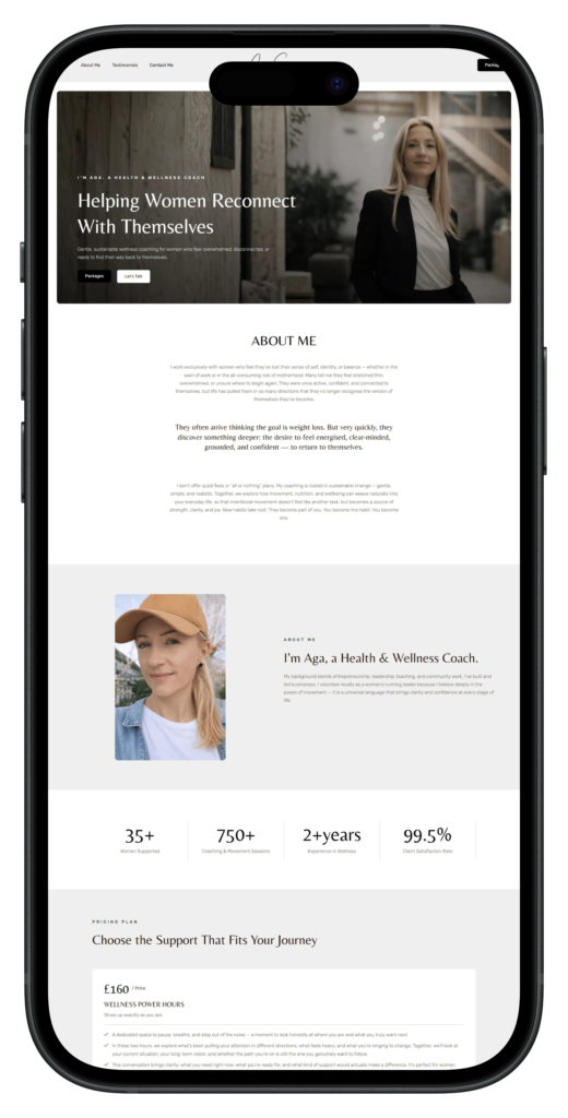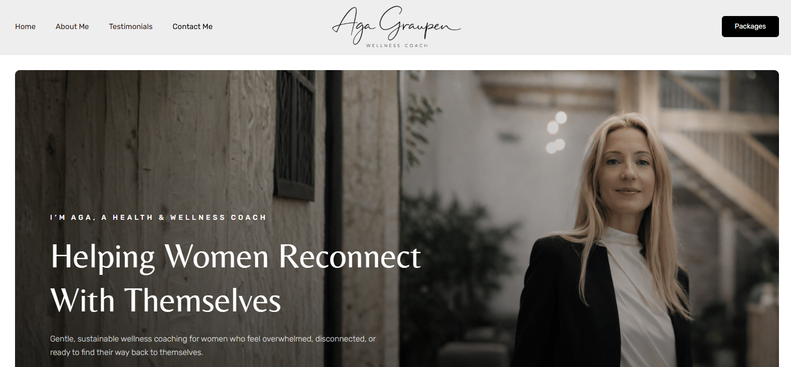 Aga Graupen Wellness Coach is a personalized wellness platform dedicated to helping women reconnect with their identity, balance, and inner strength. The brand positions itself as a supportive and empowering space where women can move beyond surface-level goals like weight loss and instead focus on sustainable wellbeing, confidence, and clarity through mindful movement, nutrition, and lifestyle habits.